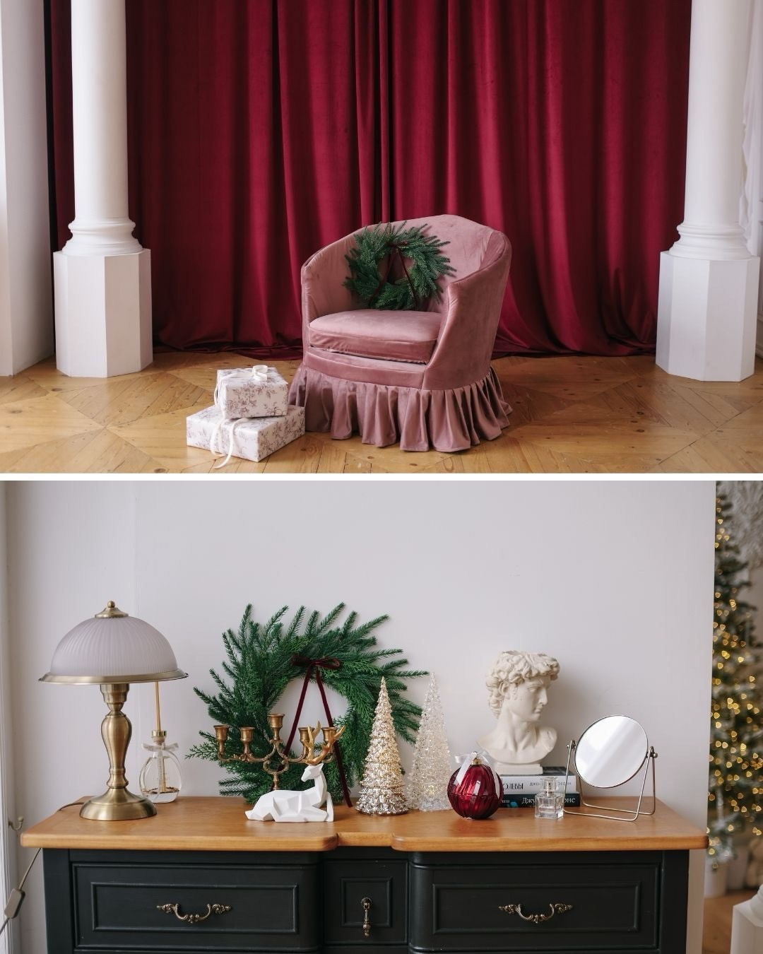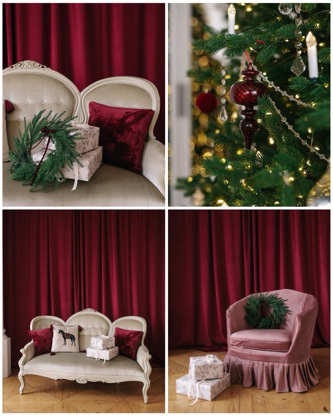▪ Винтажная мебель, лепнина, золотой бархатный фон, колонны, дворцовые люстры