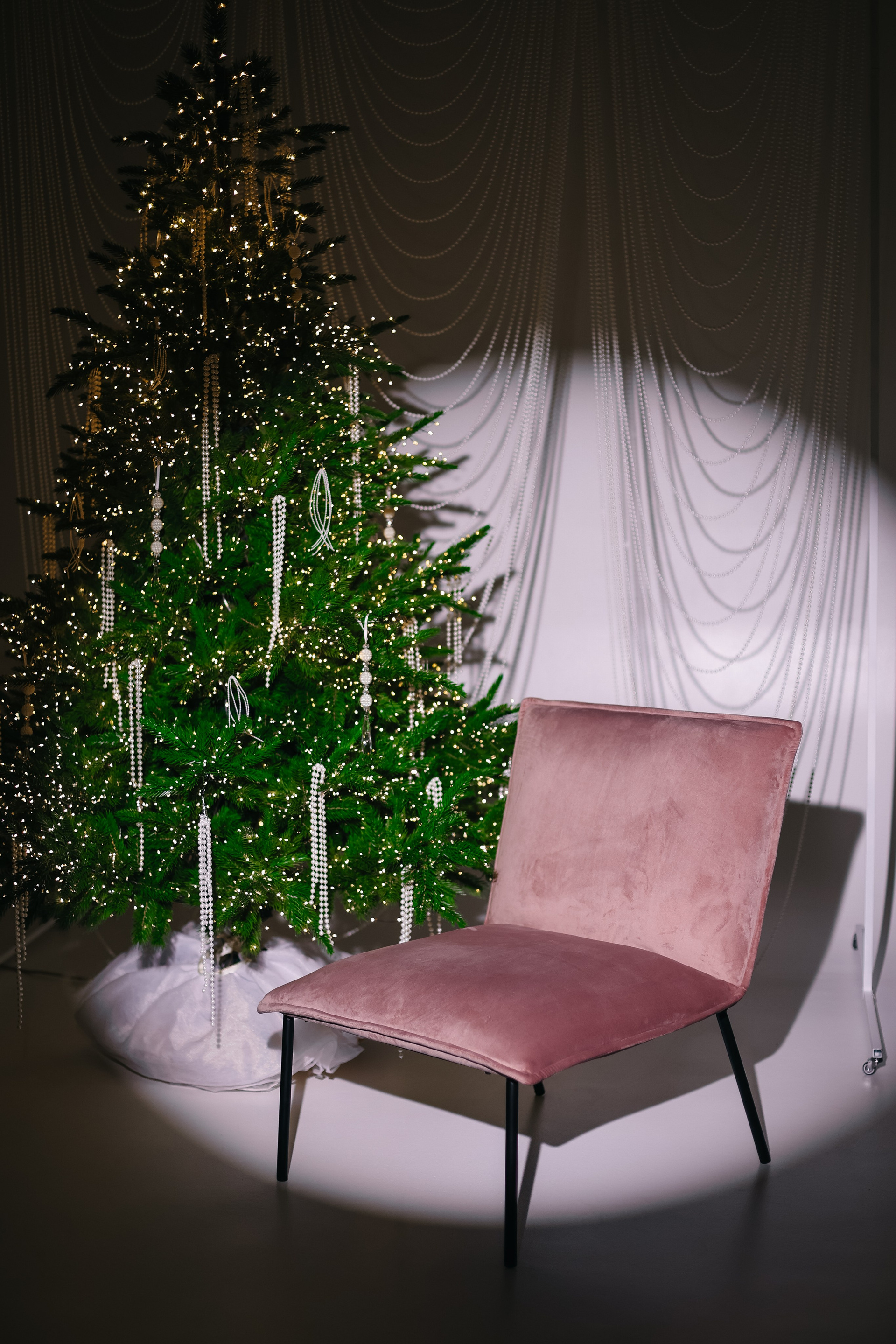 ▪ Трендовая мебель, коричневая стена, акцентная бежевая стена, циклорама, черный бархатный фон, арки, молочный льняной фон, белая лестница, подиум.